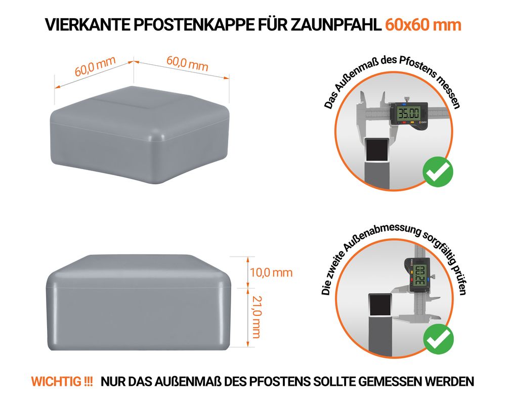 ● ANWENDUNG: Pfostenkappen werden für quadratische Zaunpfähle verwendet, so dass sie auf Pfosten von Maschendrahtzäunen und Gitterzäunen zu finden sind.